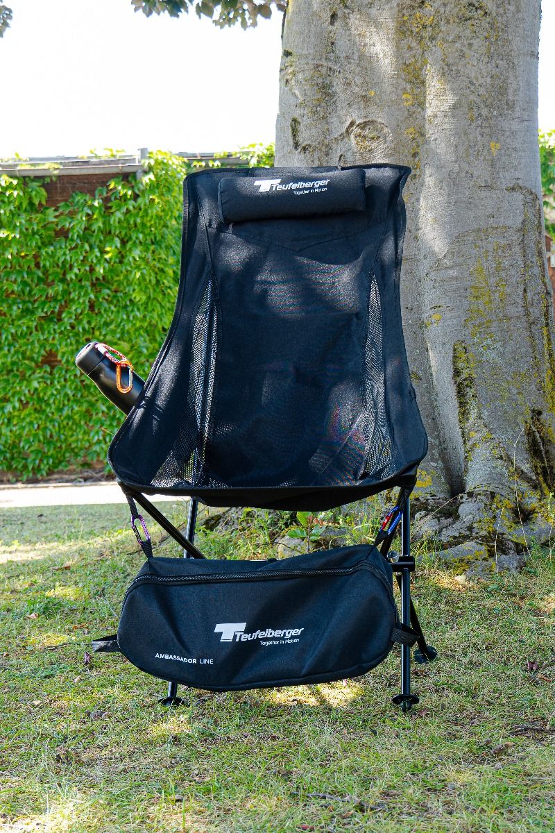 Der TEUFELBERGER tCHAIR wird in einer kleinen Tasche geliefert, damit man ihn überall hin mitnehmen kann.